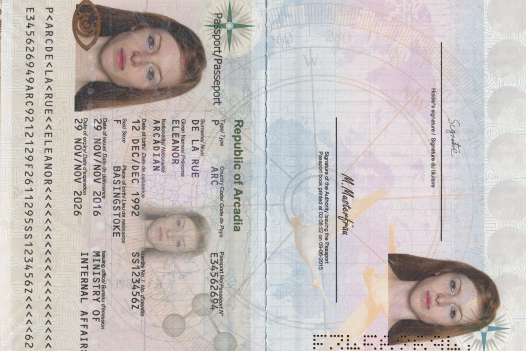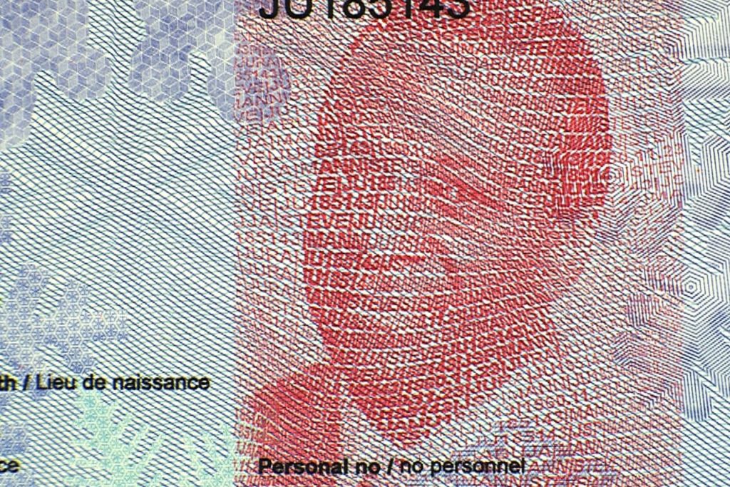 Passport data page under Vis/IR examination